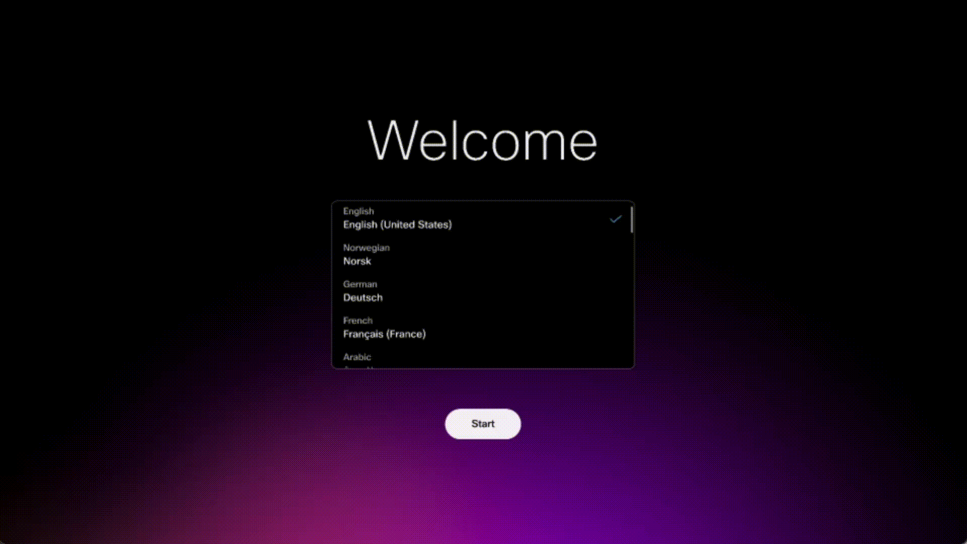 Now that you have the activation code, enter it manually on the device manually. After the factory reset the device will be on the welcome screen. From here, choose all the default options until you see a screen with "Cisco RoomOS Experience" and "Microsoft Teams Experience". Select Microsoft, then enter the activation code, press "Continue" and then begin installation. This process will take several minutes.