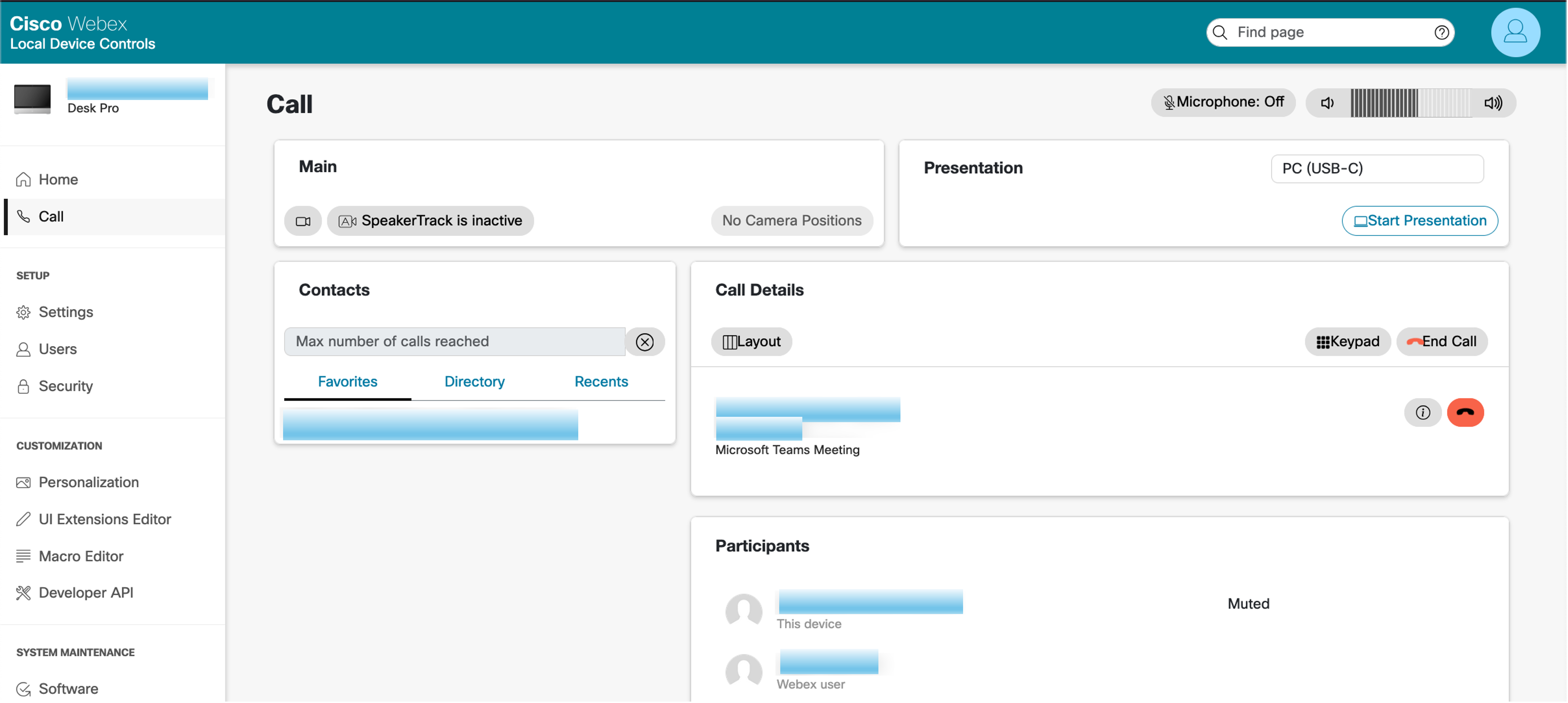 You will notice the Remote Access session will be closed. To continue to provide support for the call user either: Option 1 - Local Device Control and use the Call tab to control the call or Option 2 - Use the xAPI commands.