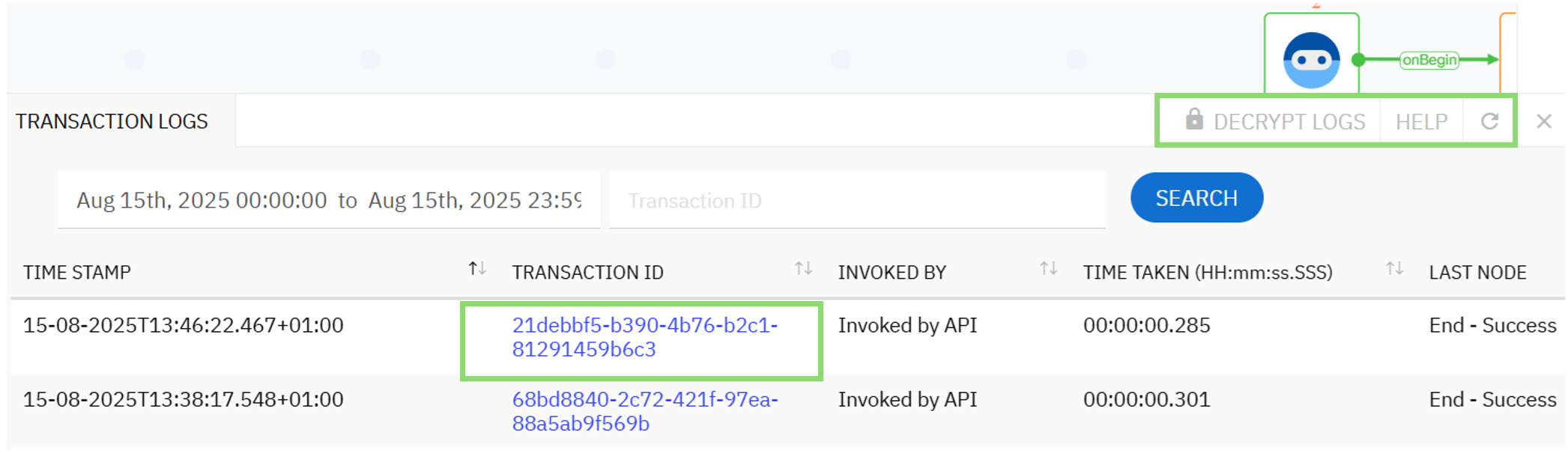 - First, click Decrypt Logs to convert the logs into text, then select the latest transaction.