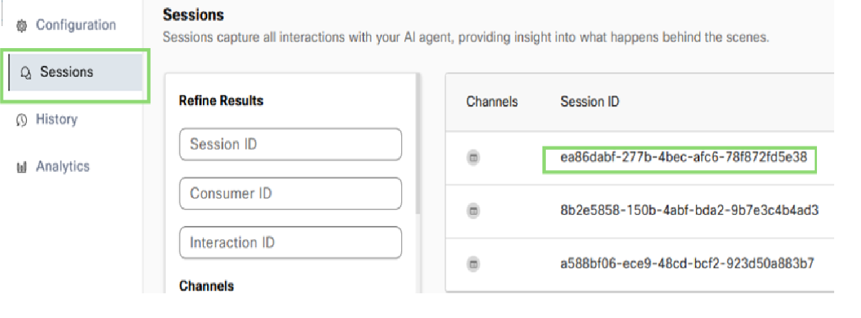 - To begin, verify the session details to confirm the agent's actions by going into the Agent and Sessions Section.