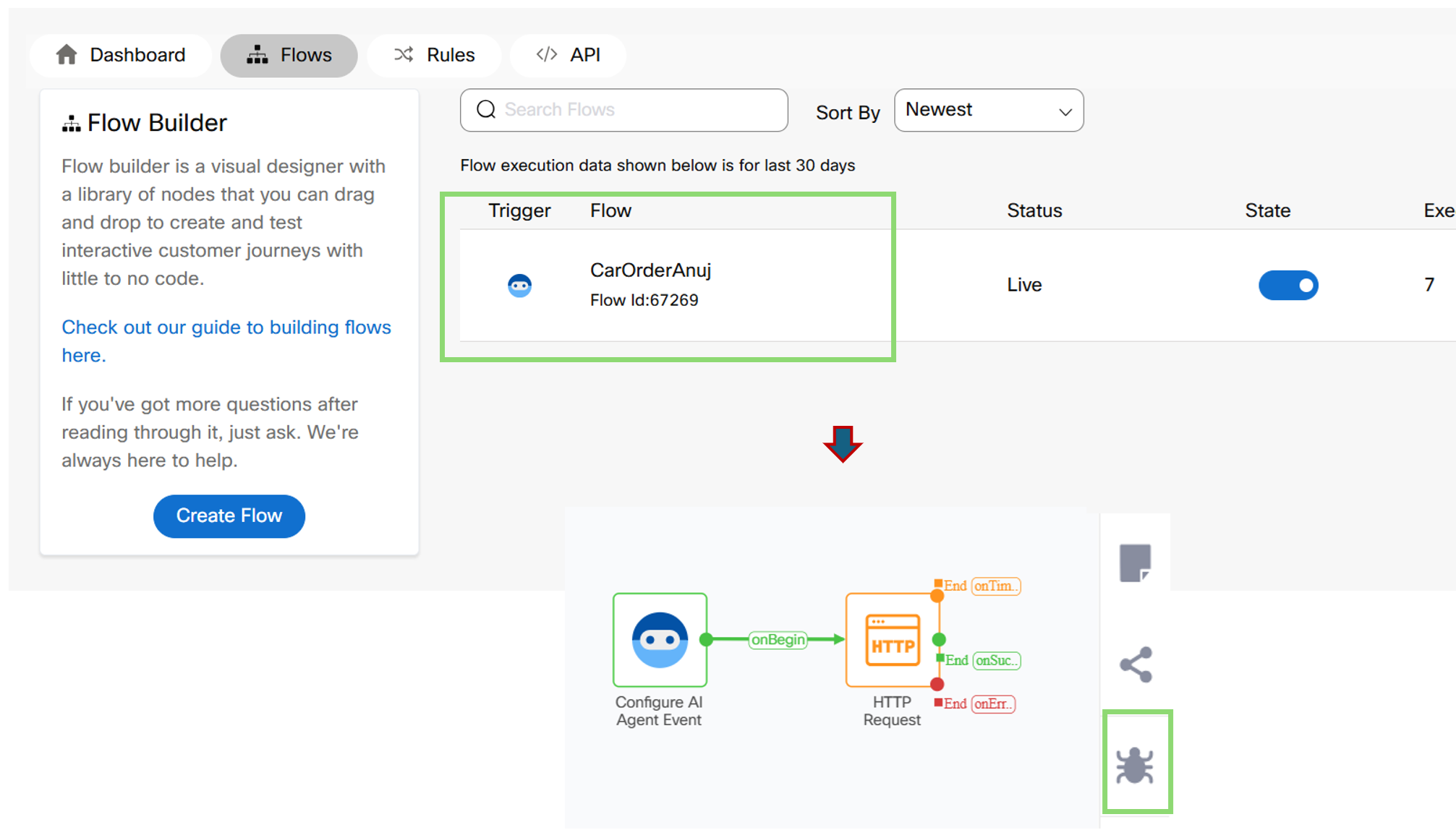 Lets begin by creating a Webex Connect flow, which can later be selected to a specific Webex AI action.