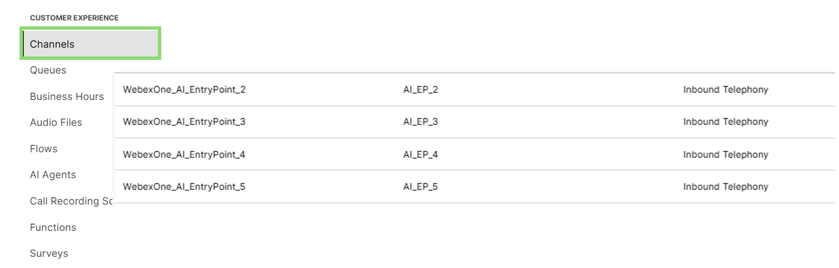 Navigate to 'Channels' menu in the Webex Contact Center configuration.