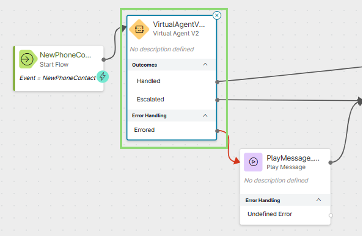 In the Flow section of the voice flow you created, select the VirtualAgentV2 node.