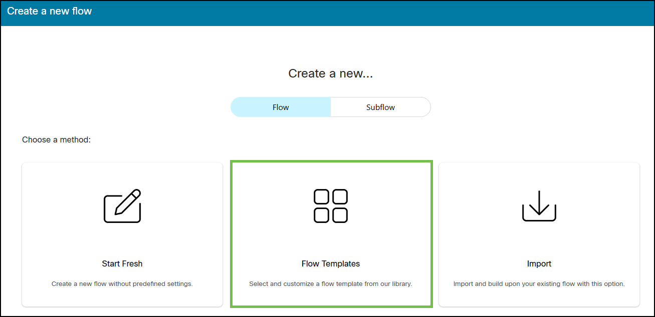 - When prompted to 'Choose a method', select 'Flow Templates'.