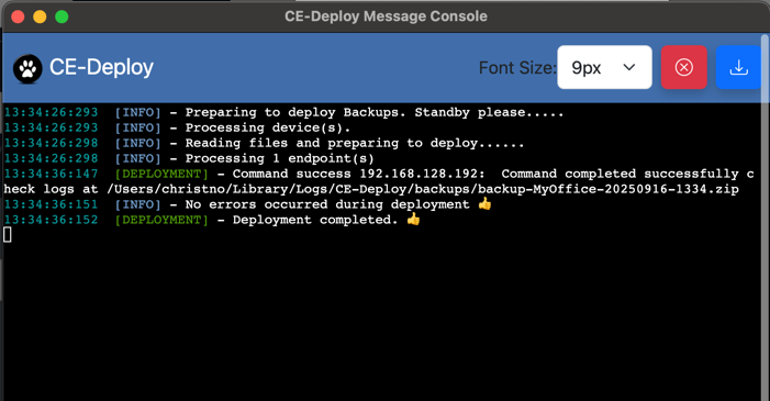 You have a backup but now what! Can you workout how to restore your endpoint using CE-Deploy? Hints: Deployment feature "EndpointRestore" may help. Ensure CE-Deploy is allowed inbound connections on ports 9001(http) or 8000(https) on your MAC or PC firewall.