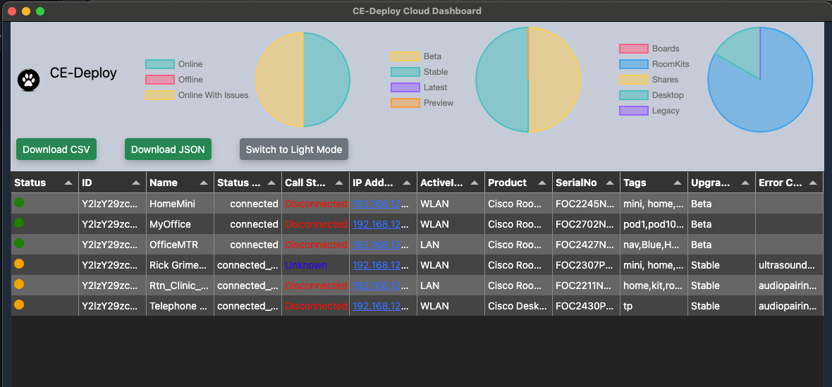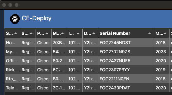 In this lab we will we are going to open one of the most popular dashboards in CE-Deploy and check out our inventory. In the previous lab we saw the Macro Factory for viewing and controlling the macros on our endpoints. In this lab we are going to look at our inventory and gather our serial numbers to help with our lifecycle management.