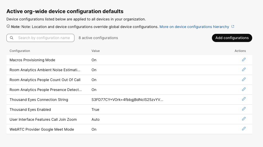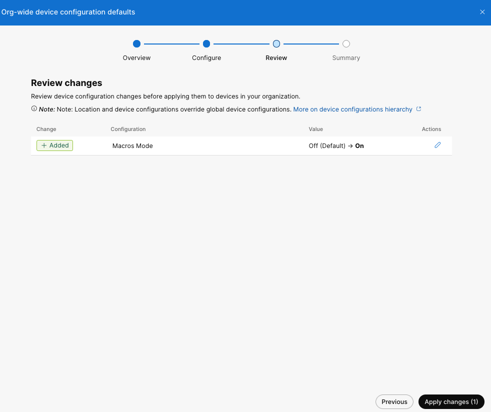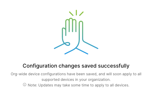 Congratulations! You’ve just viewed an organization-wide configuration template. From now on, whenever a new device is added to this organization, the org-wide default settings will be applied automatically. These settings will remain in effect unless overridden by a more specific location or device configuration.