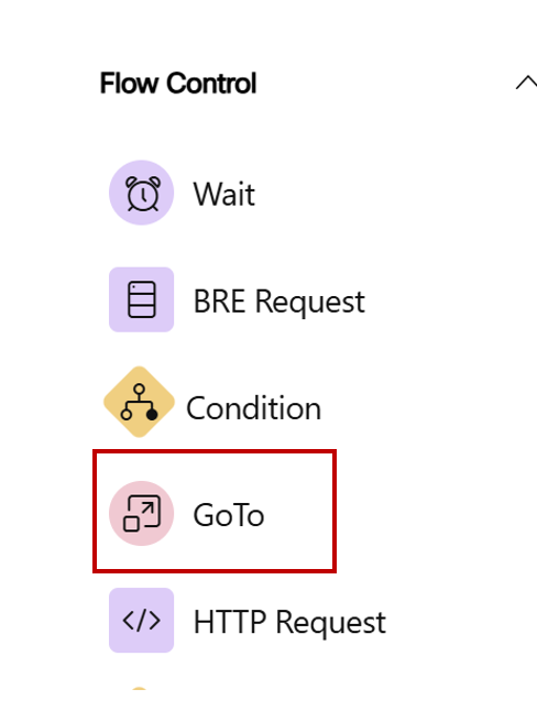 From the Flow Control section, drag a "GoTo Node" onto the canvas.