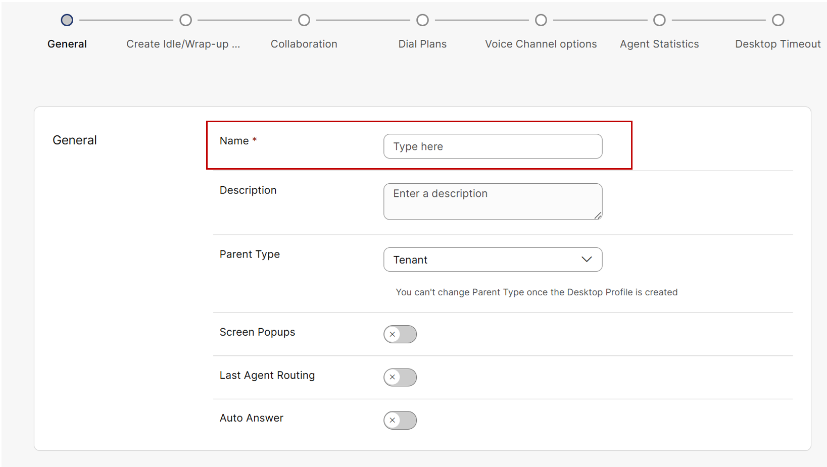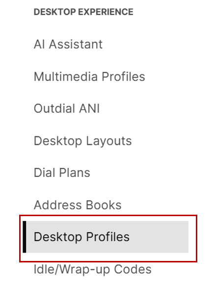 Navigate to Desktop Experience in Contact Center and click on Desktop Profiles.