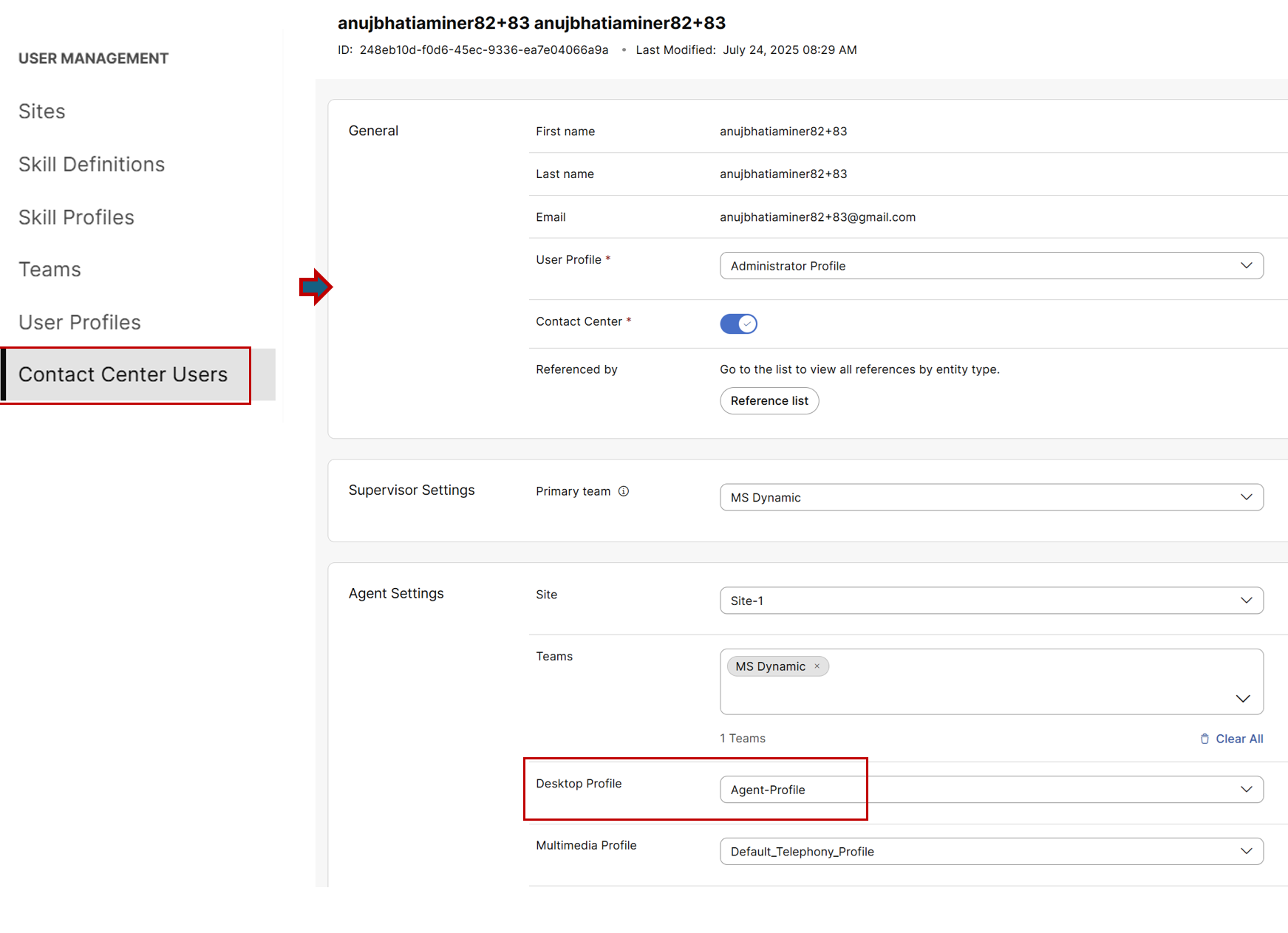 Now, Navigate to the User Management section in Contact Center and click on Contact Center Users.