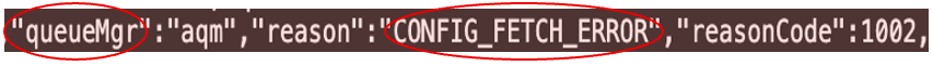 Search for "error," and at the bottom of the error message, you will notice there is a fetch error on "Config" – "Config_fetch_error." The exact config it's talking about is "queuemgr" which basically means queue.