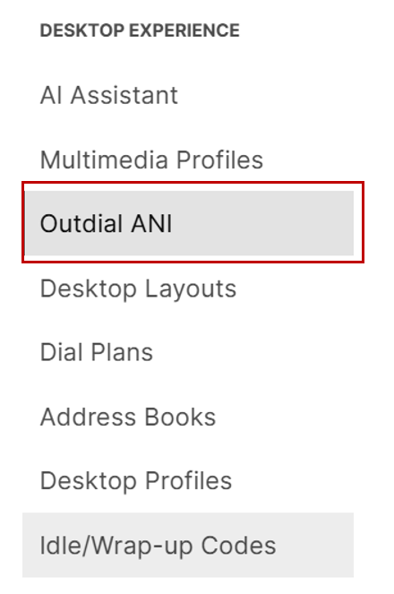 For ease here outdial ANI has already been pre-configured and to review in Desktop Experience, go to Outdial ANI settings.