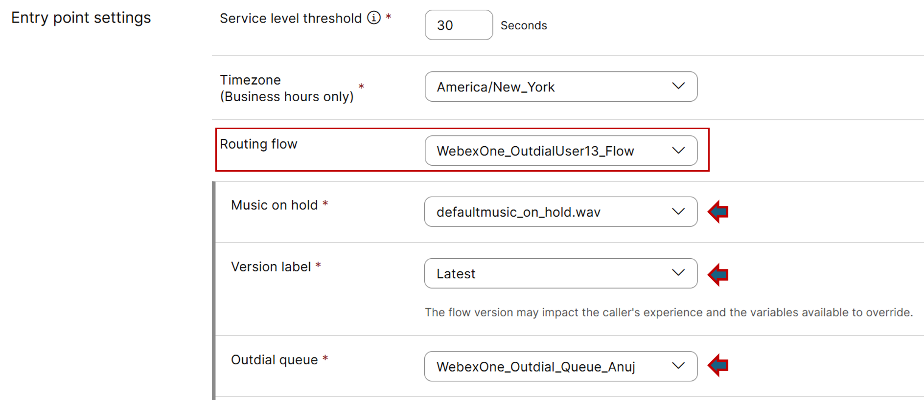 In WxCC, a queue is always mapped to an entry point via routing flows, so let's go back to the Entry Point for outdial and check the configuration again.