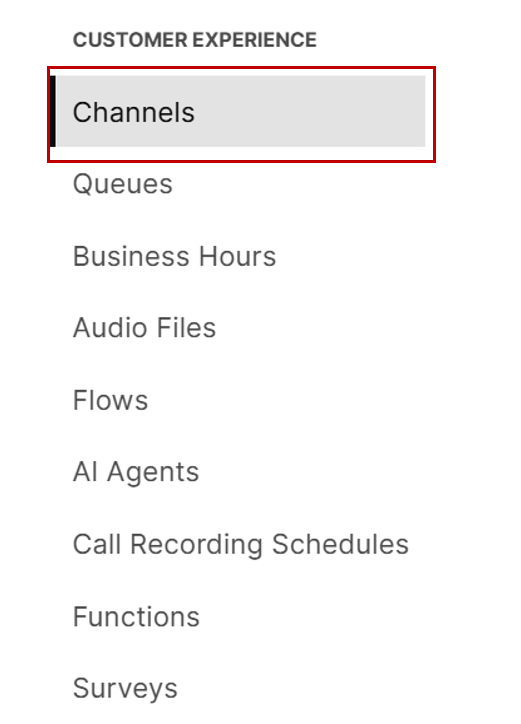 Navigate back to Customer Experience in Contact Center and click on Channels.