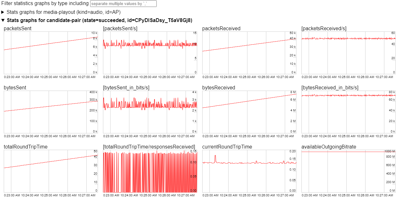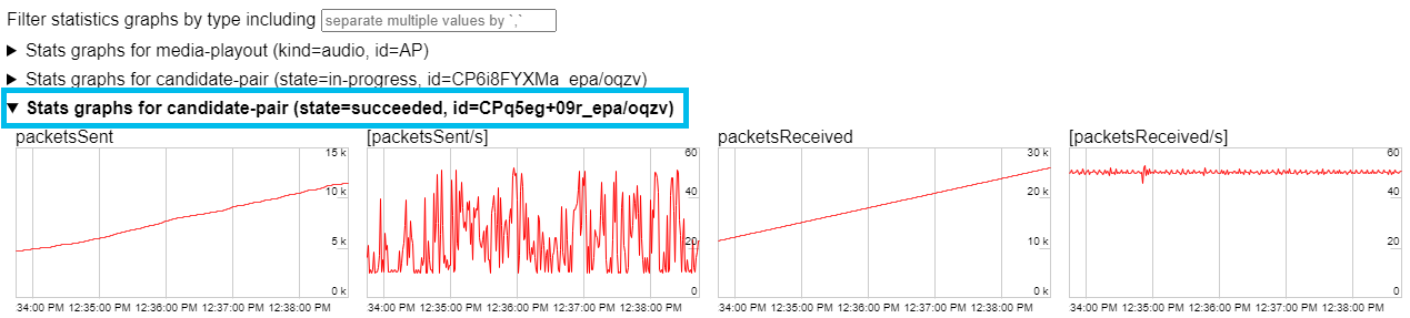 - At the bottom of the WebRTC-internals diagnostic page expand bolded text to uncover graphs for an ongoing session.
