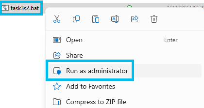 - Right-click on the task3s2.bat file and choose 'Run as administrator' (audio will be lost for 10 seconds).