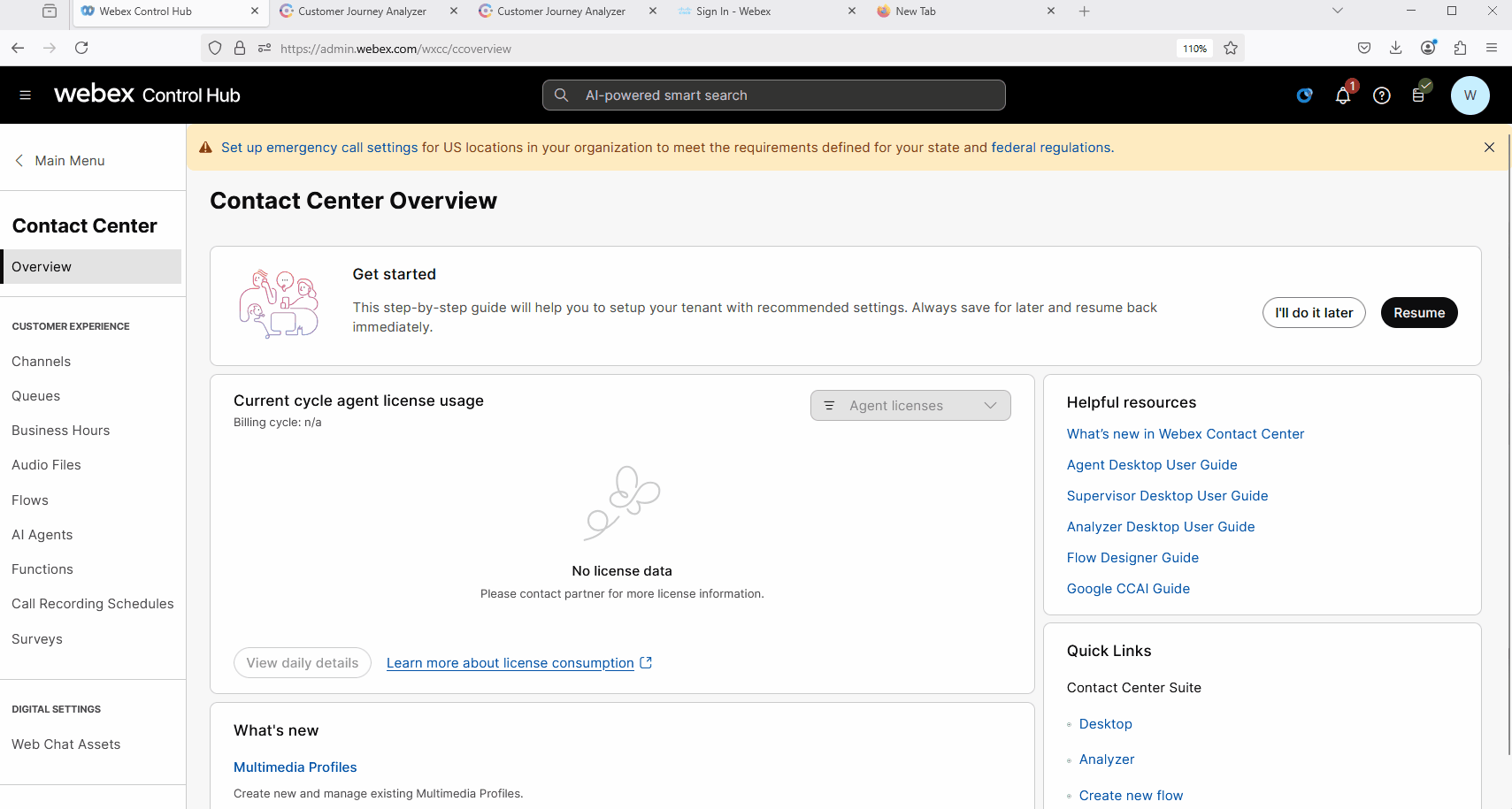 Once you purchase the offer, admins with the appropriate profile and access controls will be able to view the AI Assistant menu in Control Hub.