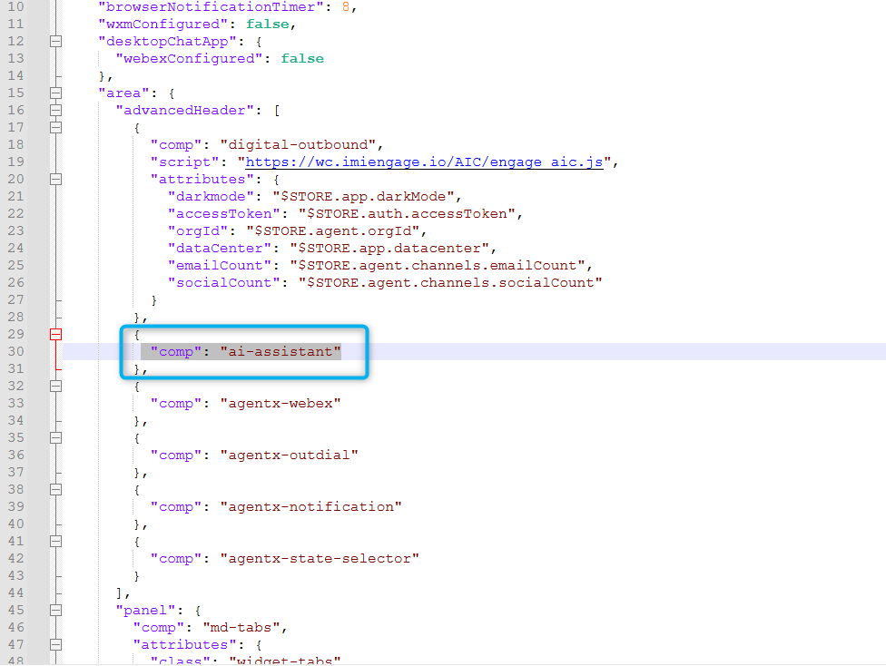 Desktop Layout file: Make sure ai-assistant is configured under the advancedHeader