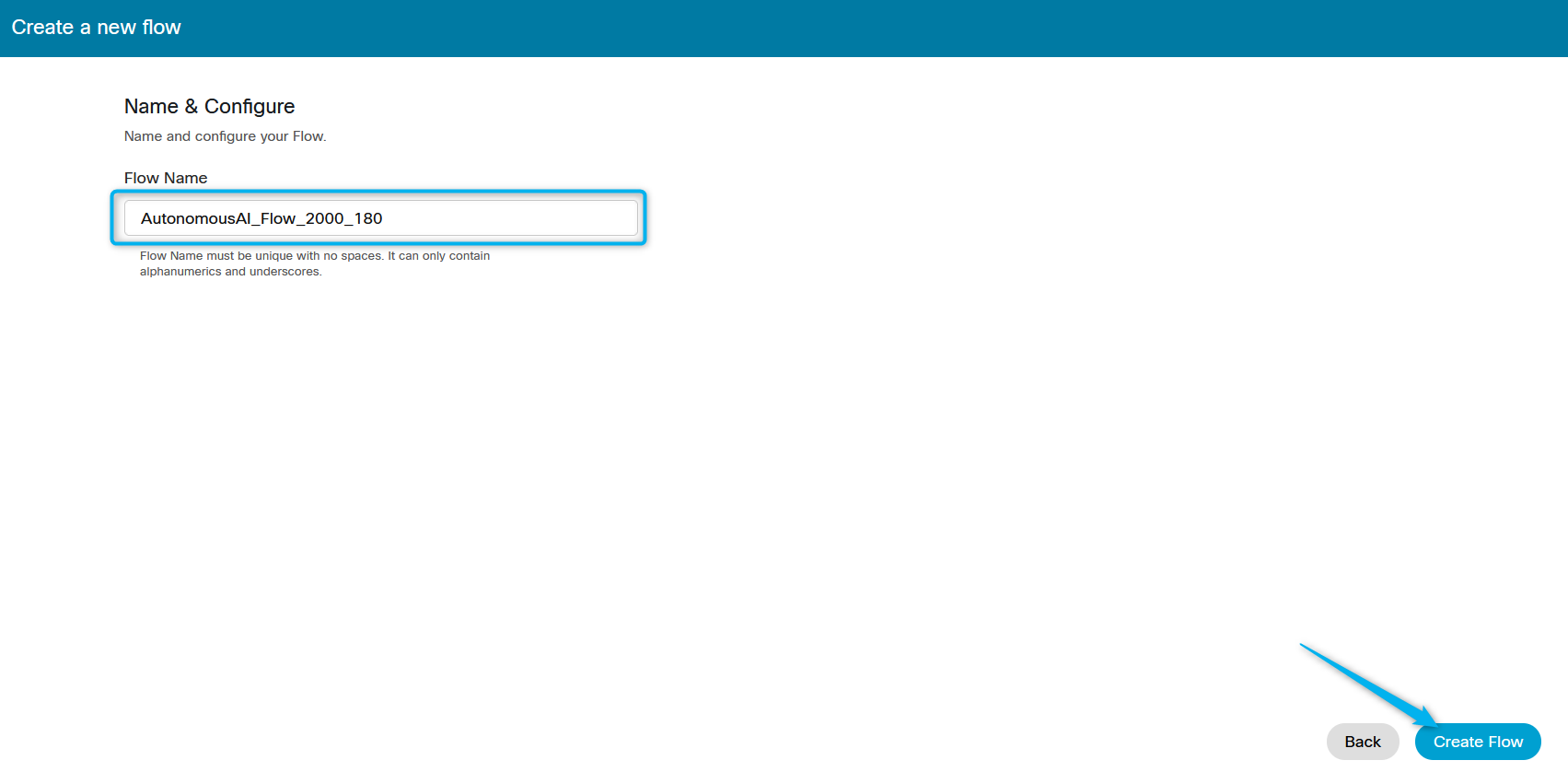 AutonomousAI_Flow_2000_ and click Create Flow. -
