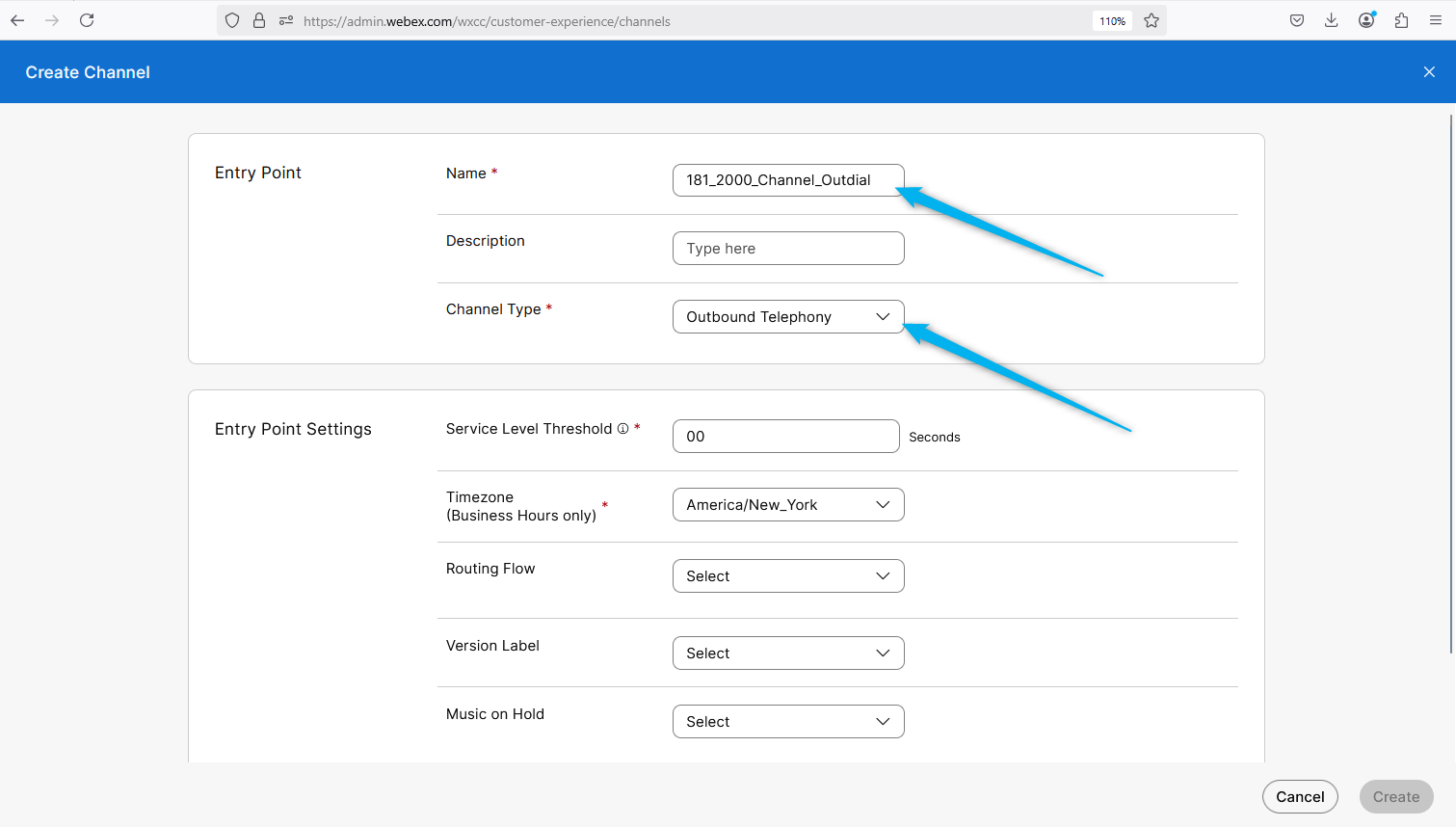 . Select Type as Outbound Telephony._2000_Channel_Outdial -