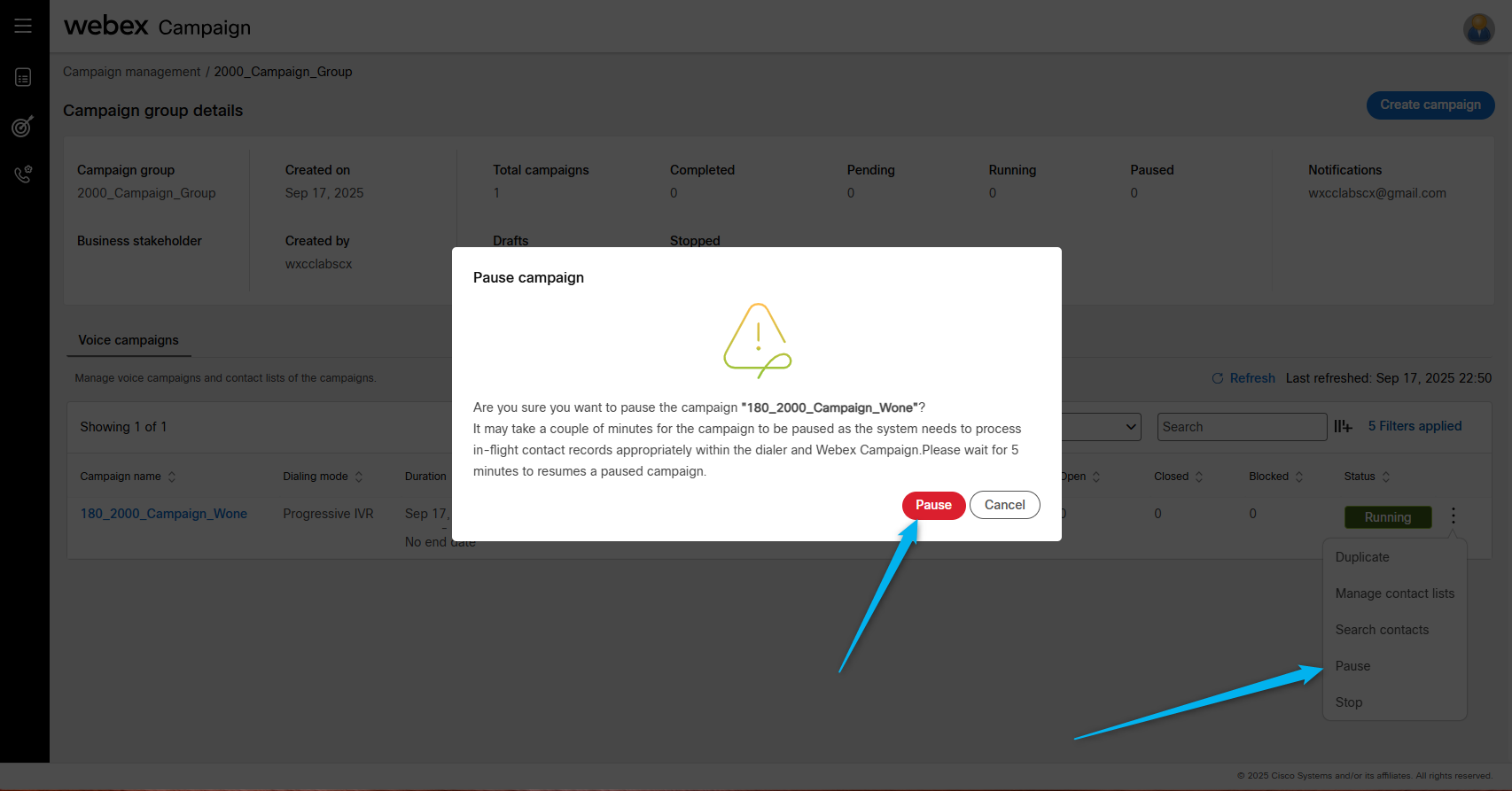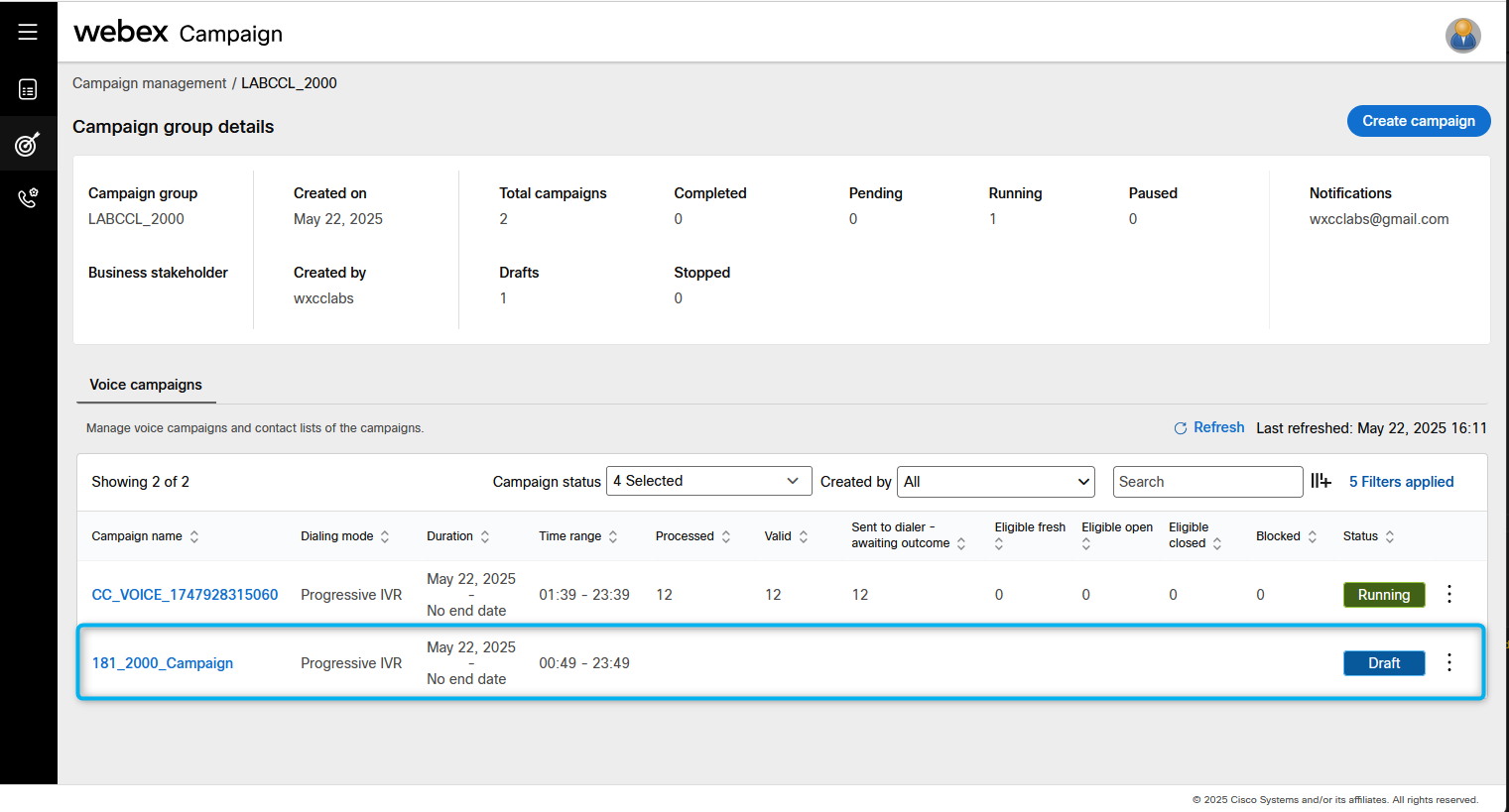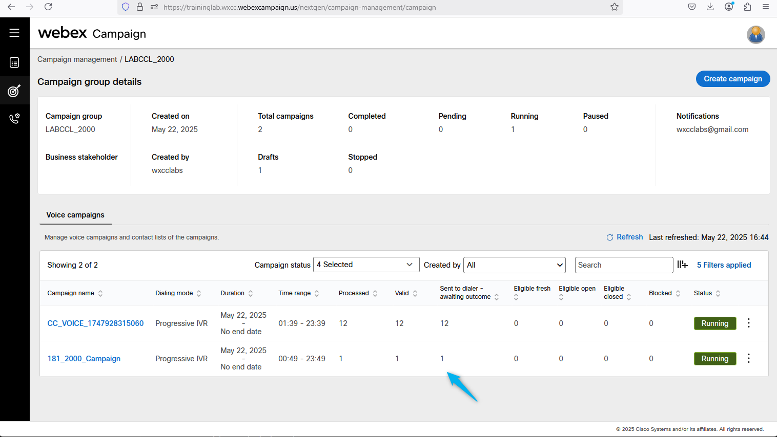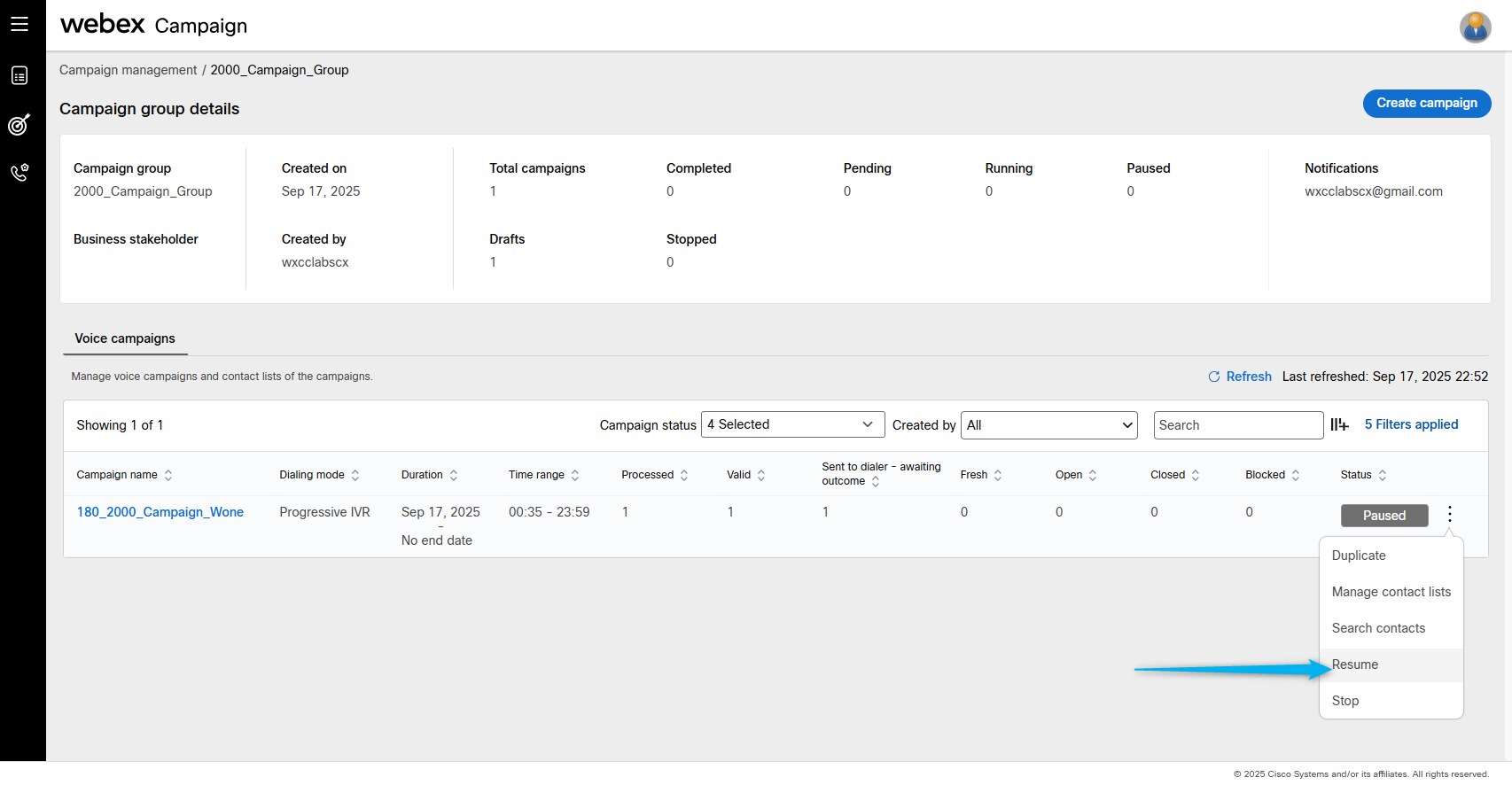 Go back to Webex Campaign Manger, find your campaign and click on Manage contact lists.