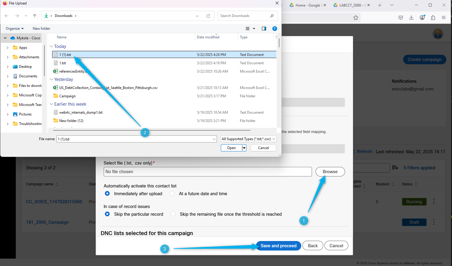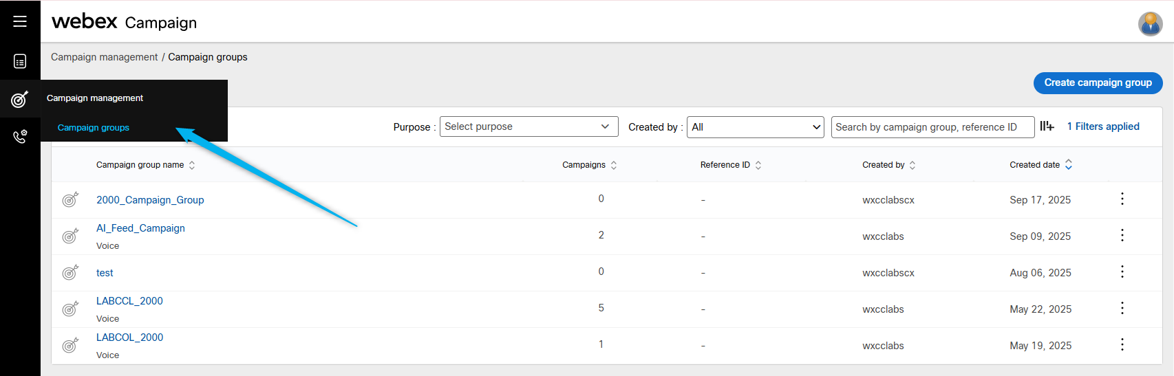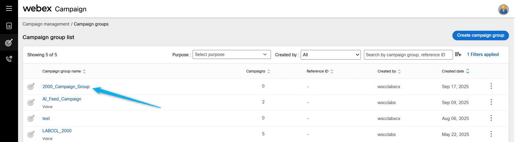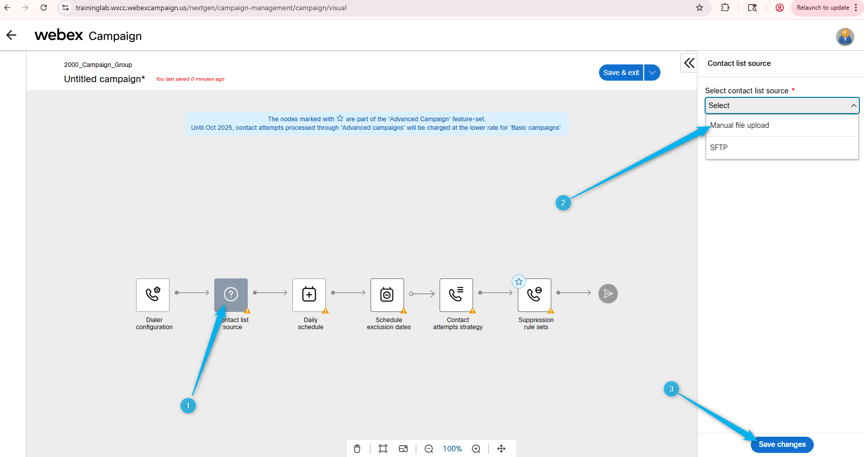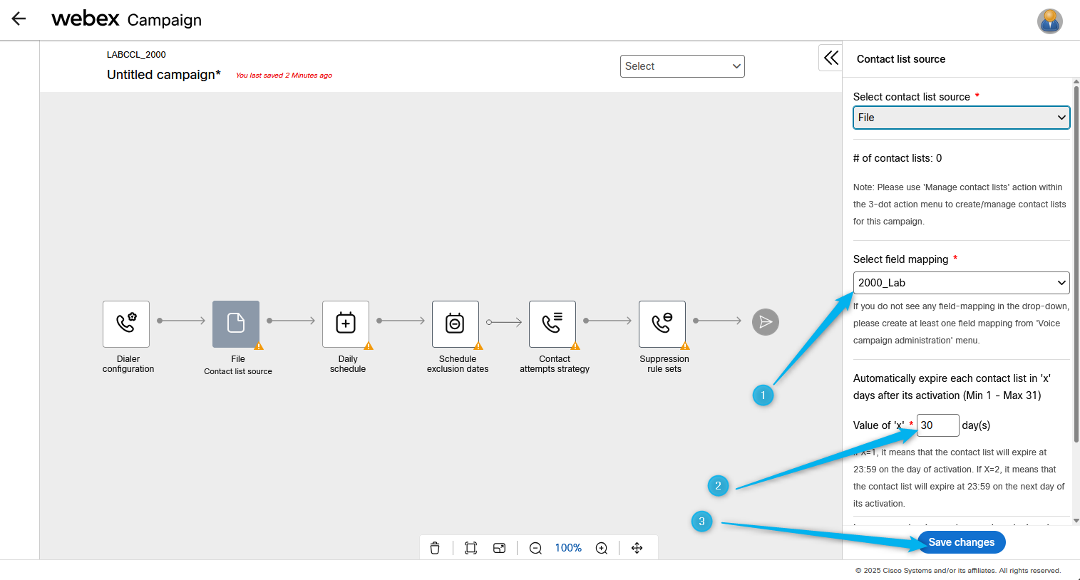 Go back to Webex Campaign Manger, find your campaign and click on Manage contact lists.