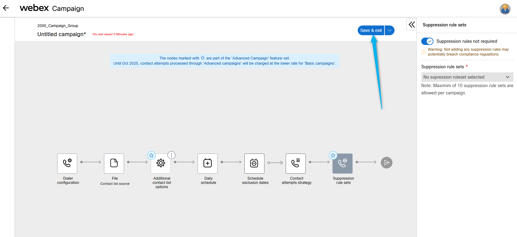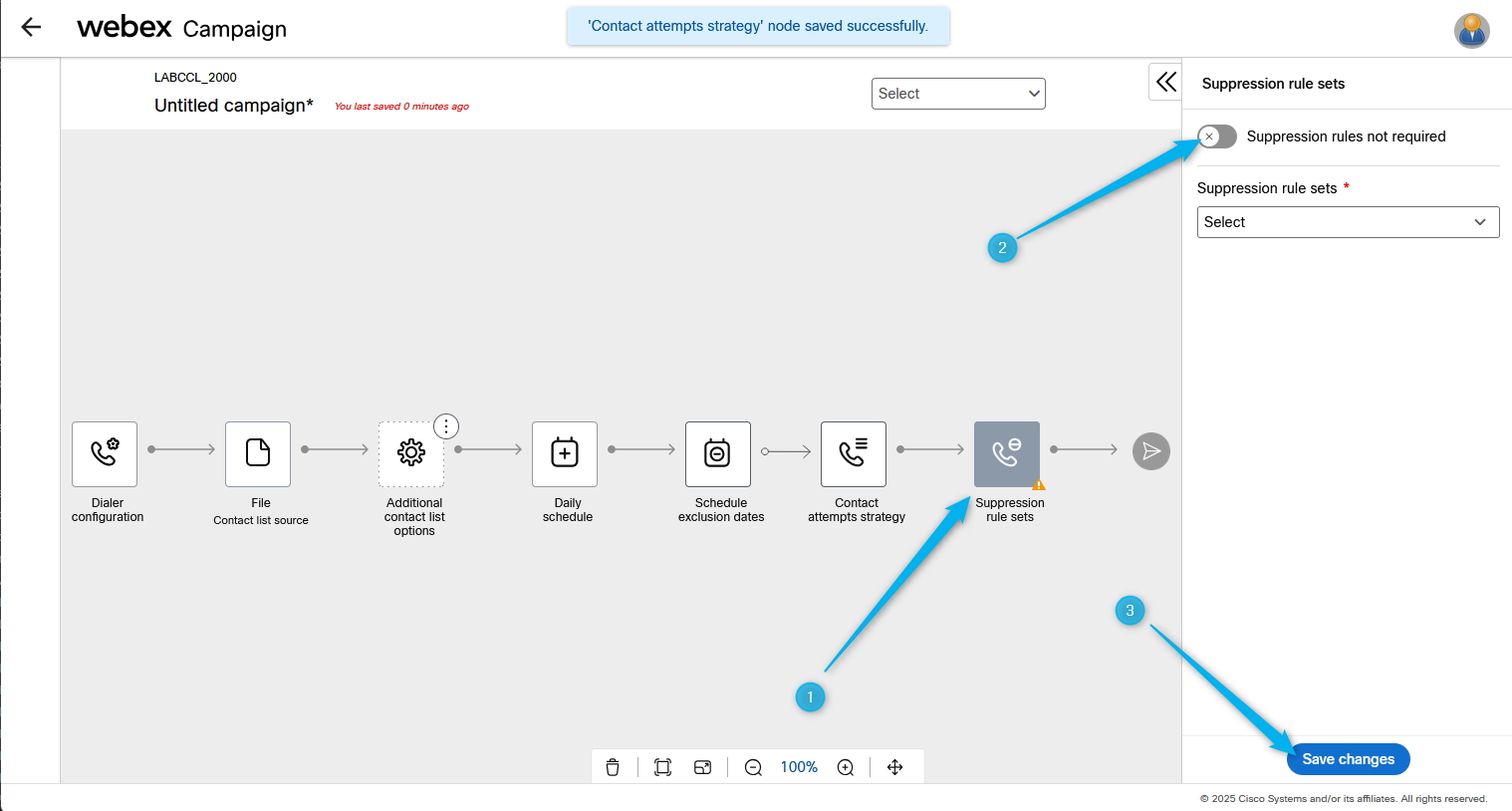 Click on Suppression rule sets. Then select Suppression rule not require option. Save changes.