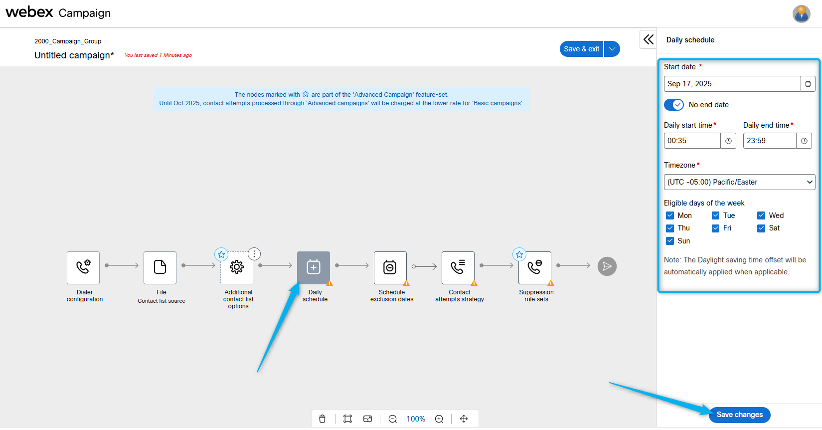 Select Daily schedule. Configure the start day and active hours during the day. Then Save changies