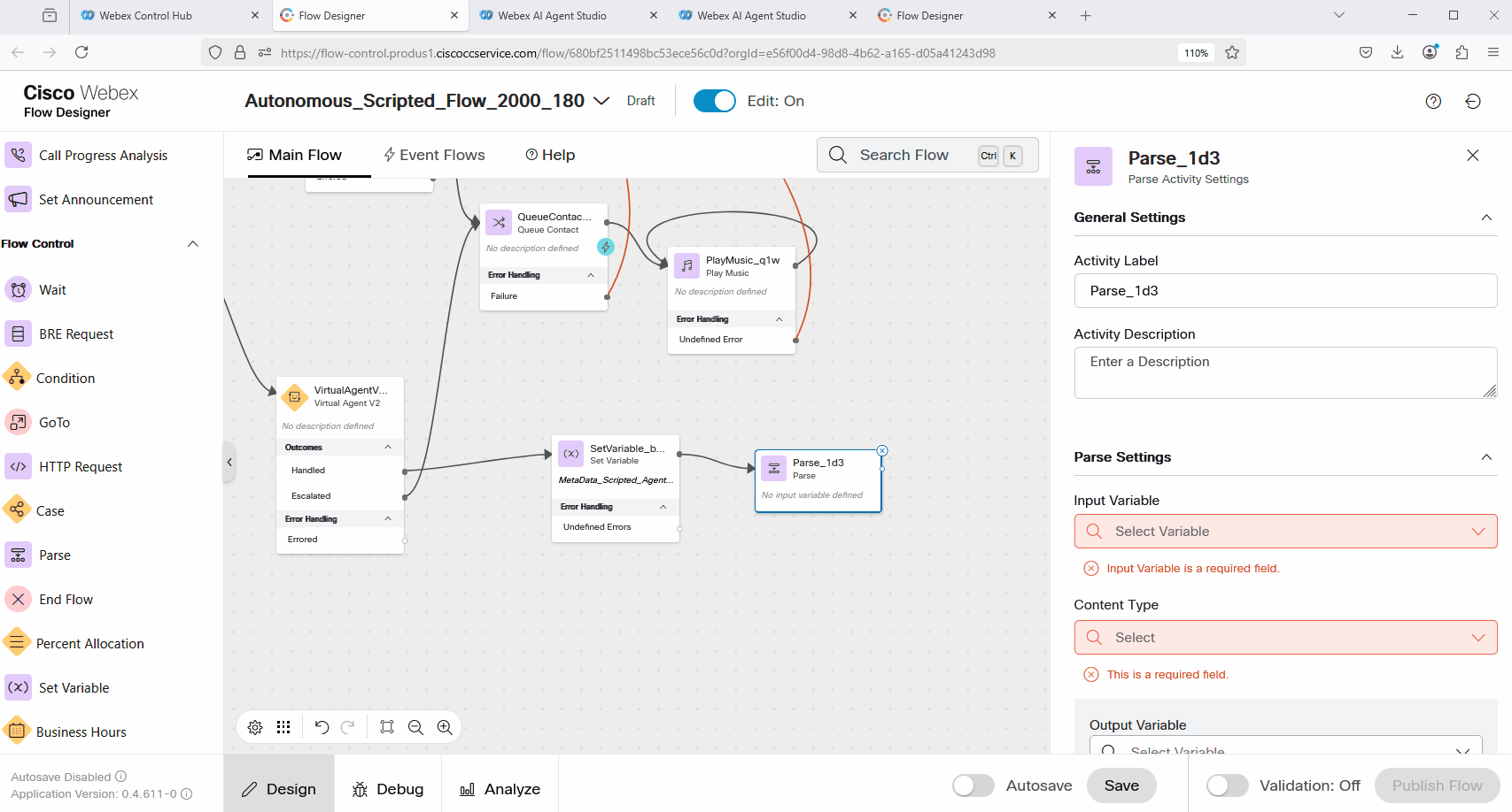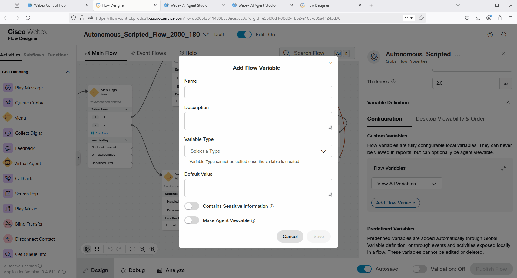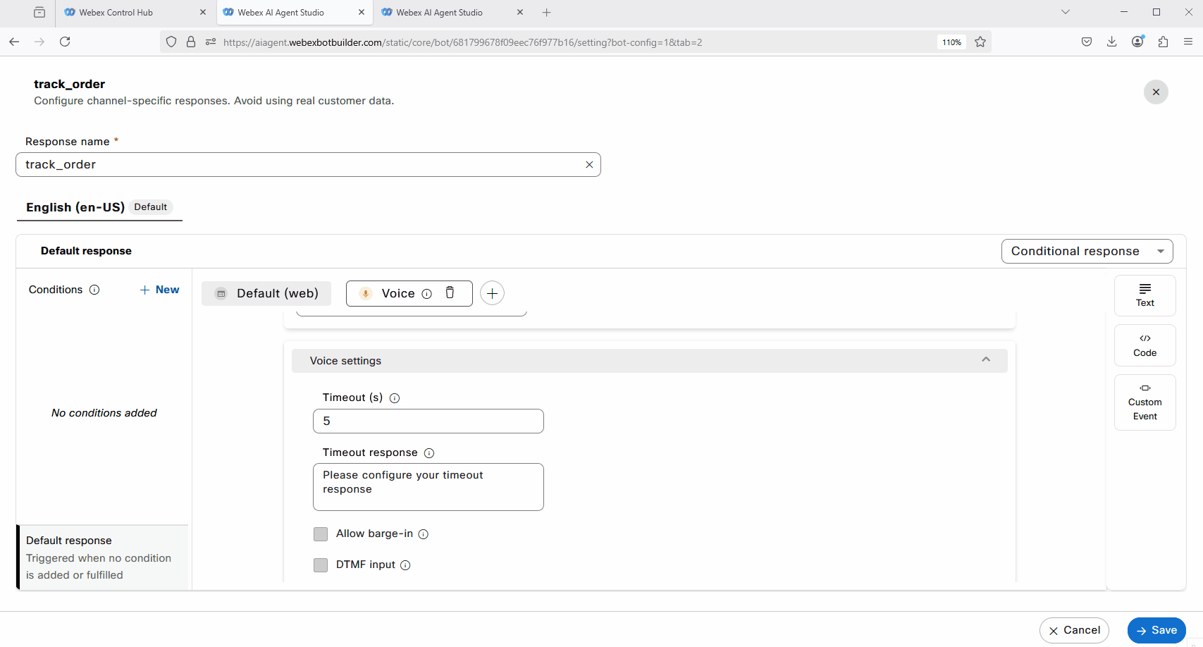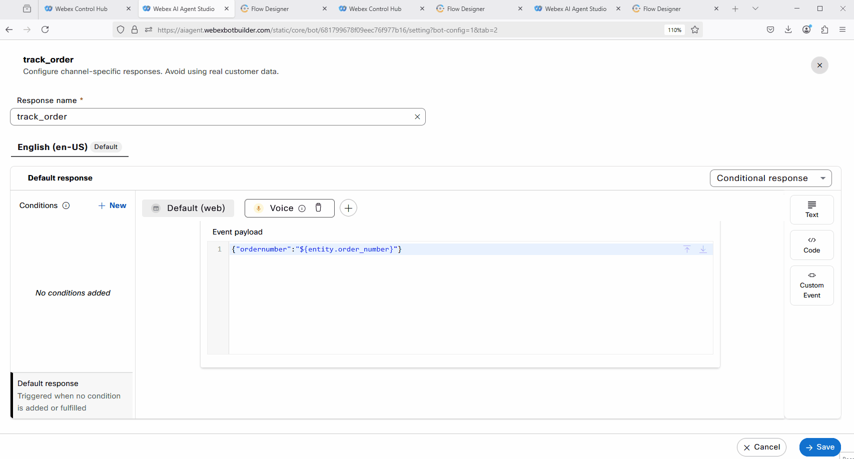 Task 1. Configure a Custom Event to send data from AI Studio to WxCC Voice Flow.