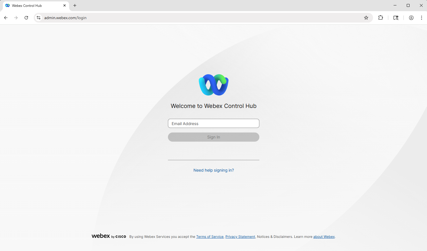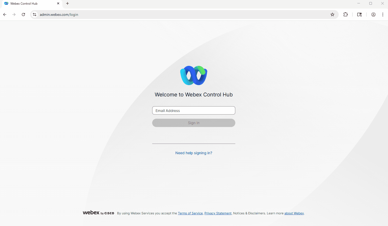 Login to Webex Control.