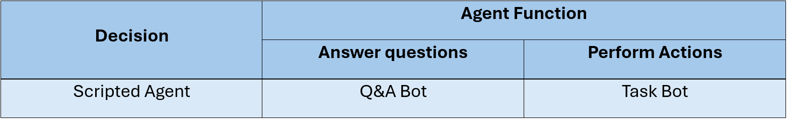 Agents that we are using so far Q&A bot and Task bot that fall under scripted agents and now we are introducing Autonomous agents that uses GenAI