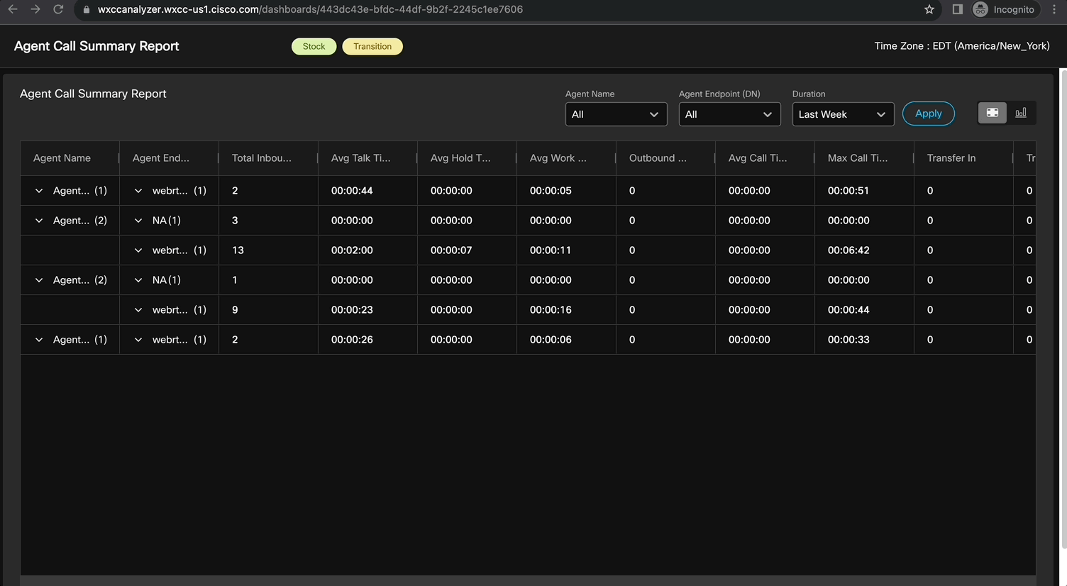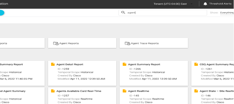 This would list all the Transition reports, which are built for easy reporting insights for customers migrated from UCCX but also useful for any customer.