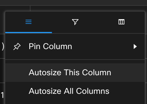 Next, let's autosize all the columns as data in some columns is not clearly visible because of last textual size. To do so: On the dashboard column, click the hamburger menu next to the column header.