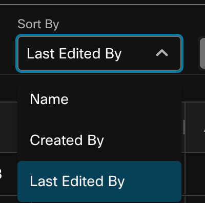Customize your search selecting criteria such as Name, Labels, Created By, or Last Edited By from the drop-down menu.