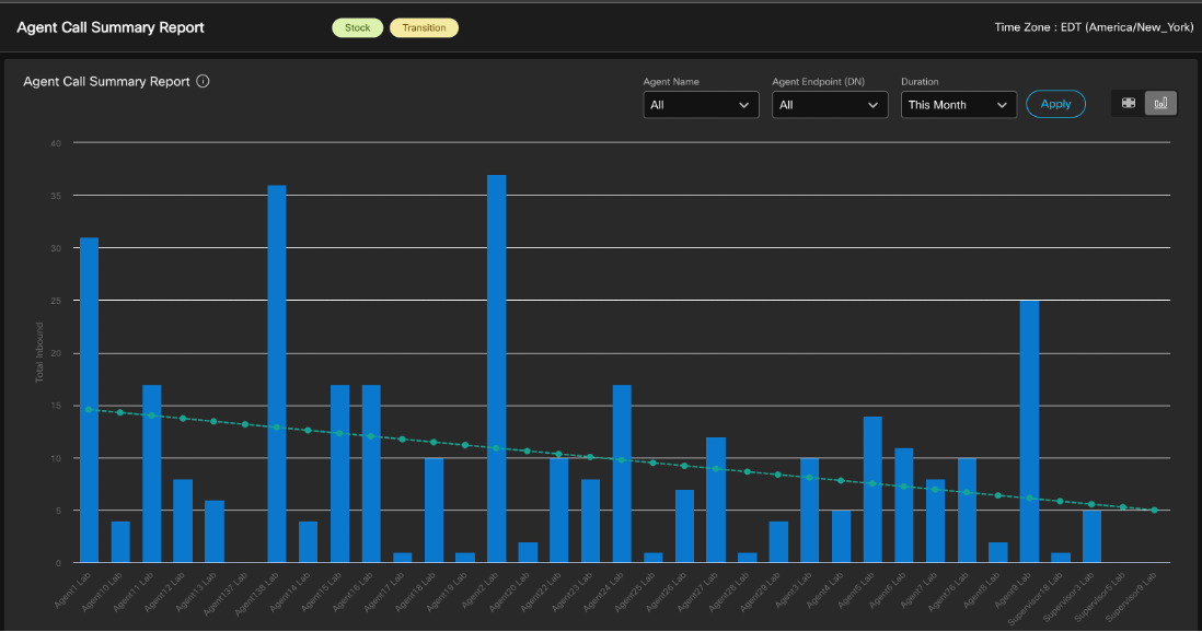 Total Inbound Contacteach agent handled during this month along with a trend line.