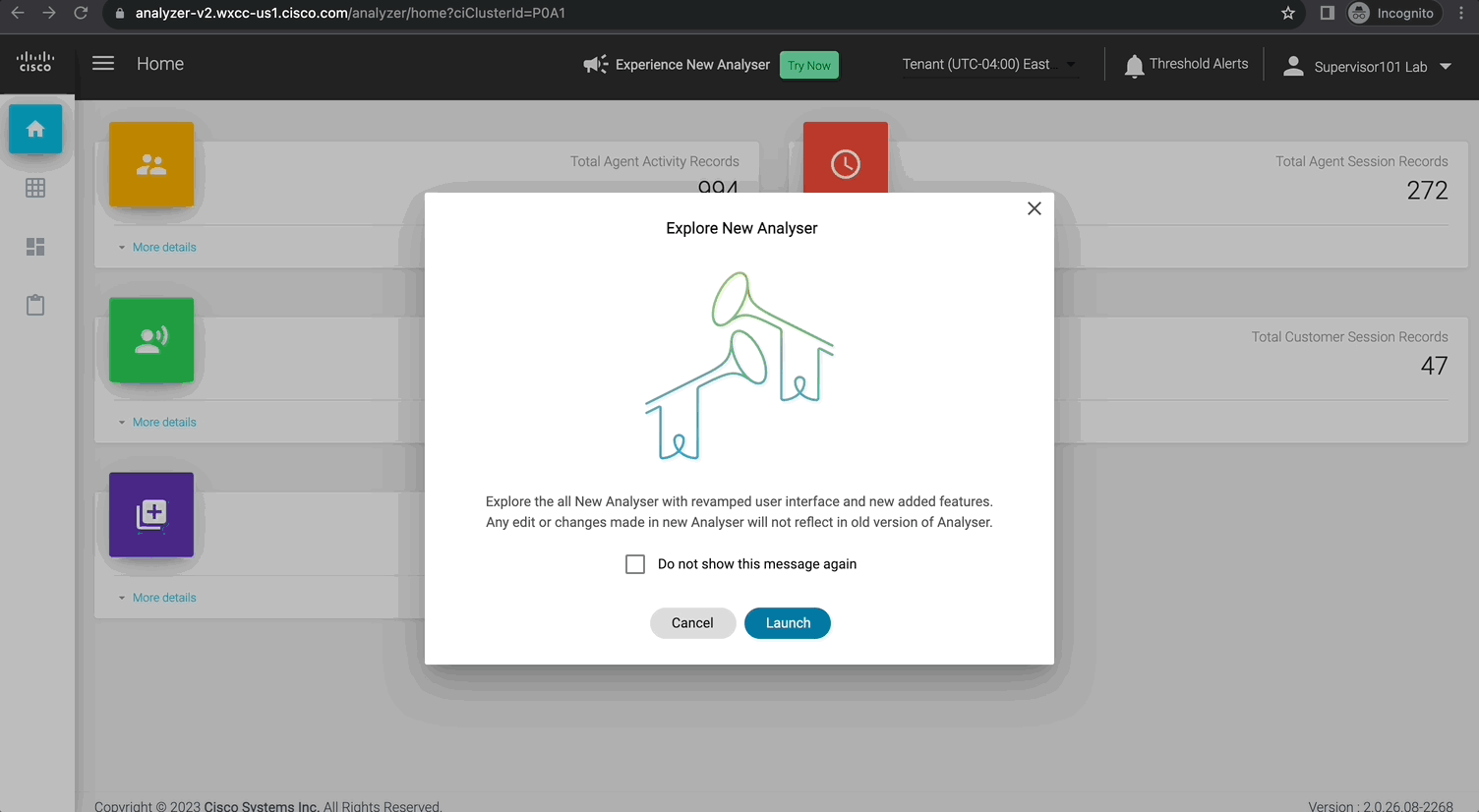 As you login, you may see this pop-up prompting to “Explore New Analyser”. Do not launch it at this time. Click Cancel !!