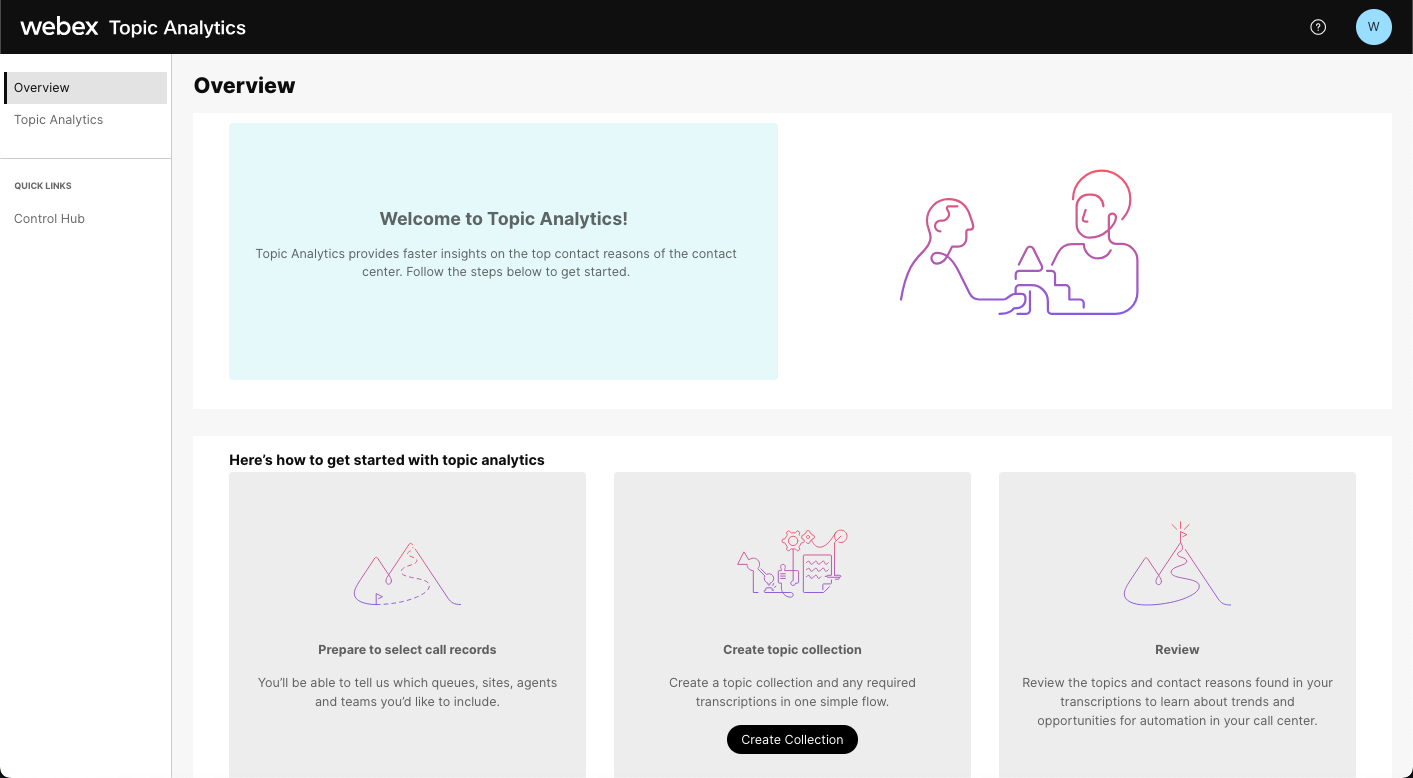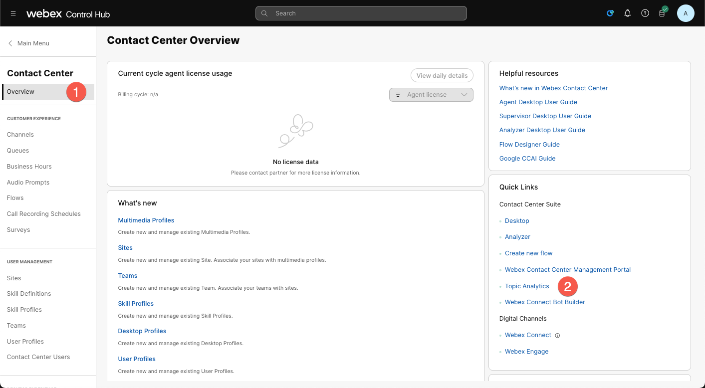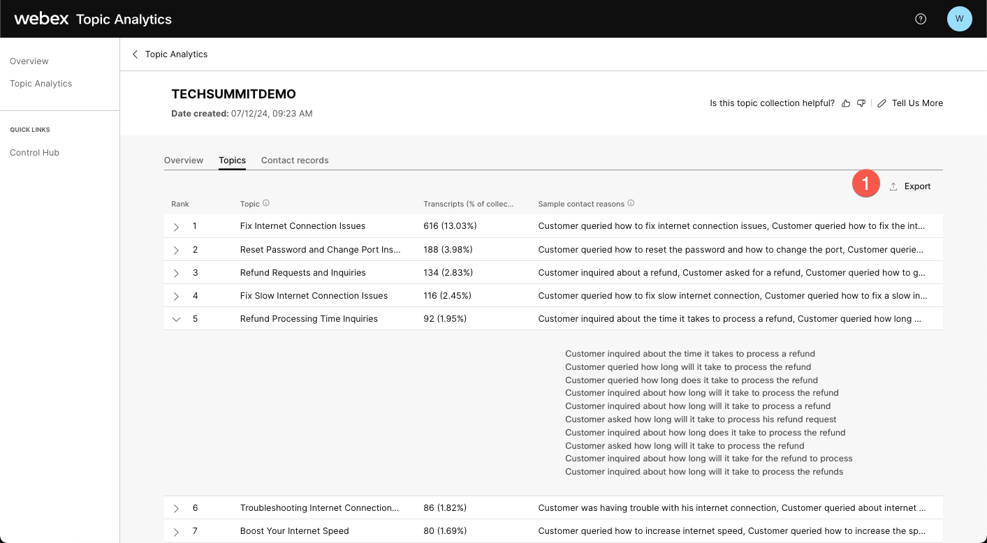 The objective of this lab is to gain a comprehensive understanding of Topic Analytics in Webex Contact Center to help identify potential candidates for automation, and apply the insights gained to enable subsequent AI-powered automation processes. This involves exploring various Topics identified by the AI model, analyzing individual conversations to identify areas of Automation. In this lab you are tasked to identify the top two opportunities for automation and capture the essential information needed to create the automation workflow by reviewing the customer conversations.