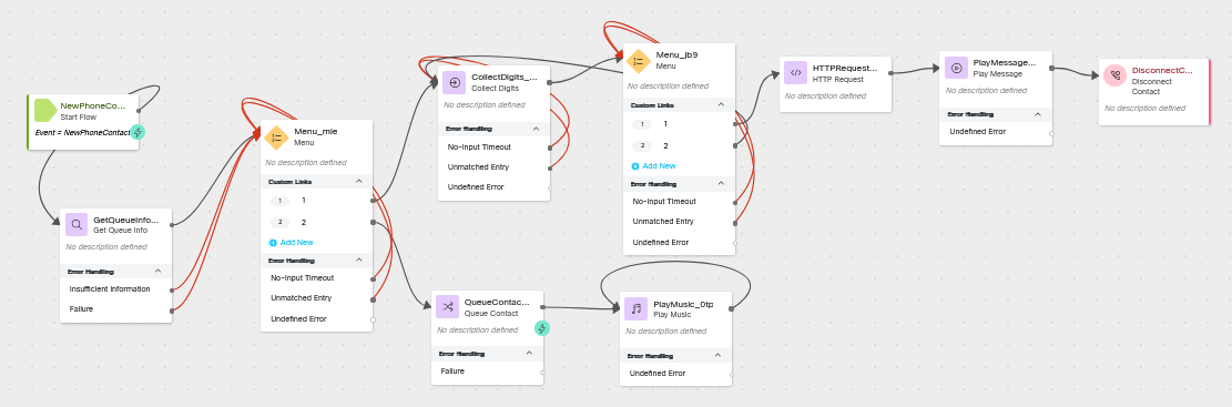 Connect the No-Input Timeout and Unmatched Entry node edges and connect them to the front of this Menu node