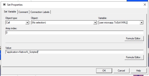 d. Locate the Set Variable node which sets the VXML Application name (the fourth node from the top left).