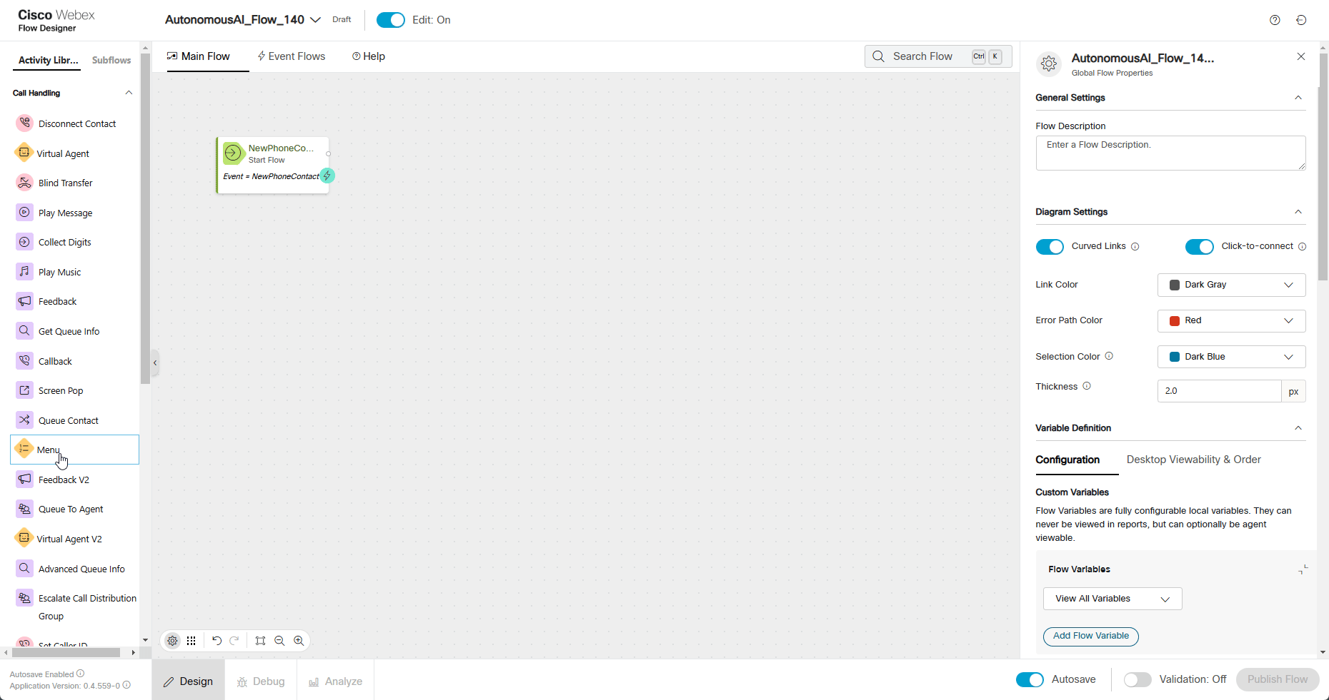 - In Webex Control Hub → Flows → Manage Flows → Create Flow