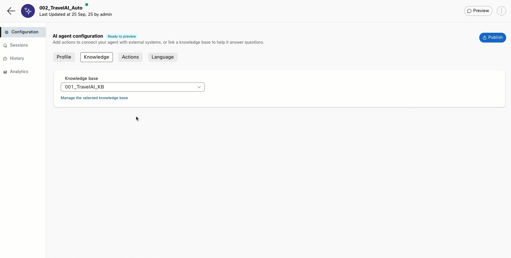 - In AI Agent Configuration → go to Knowledge Tab at the top.