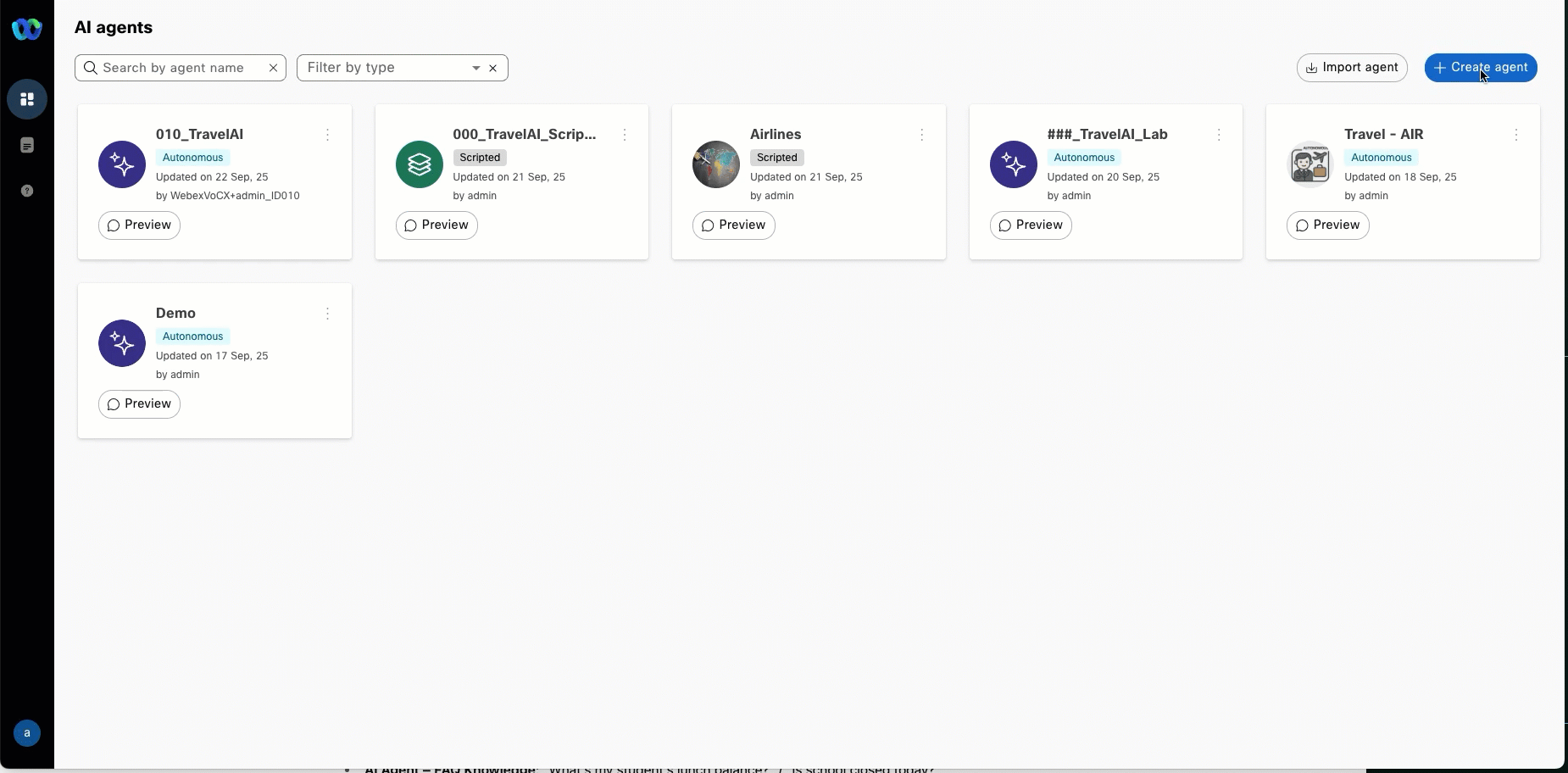 - Static Contact Center AI Config = Webex AI Agent (Autonomous)
