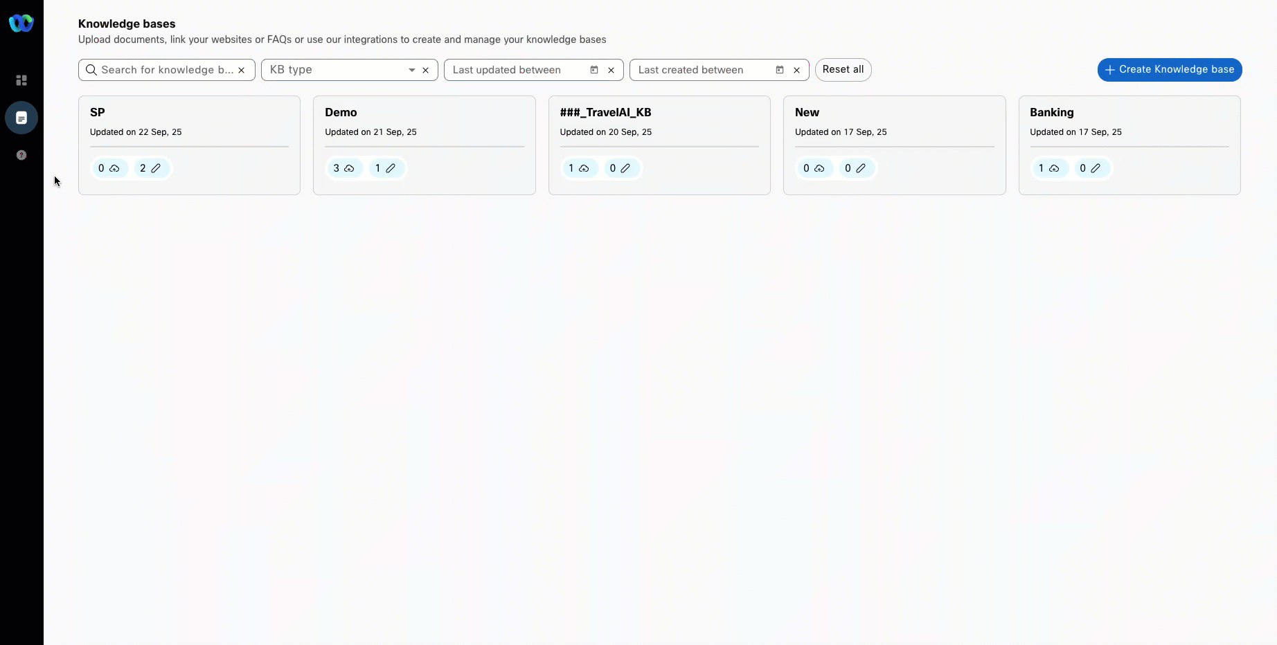 In AI Agent Builder navigate to Knowledge from left hand side menu panel