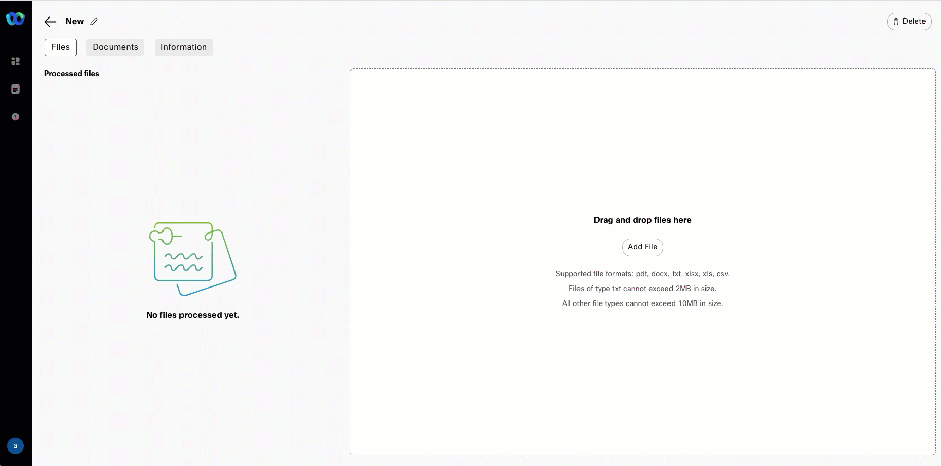 Click Add File or drag and drop file San Diego Travel AI Bot - Webex One Knowledge Base.pdf you downloaded from external drive on Step 1. Then click Process Files.