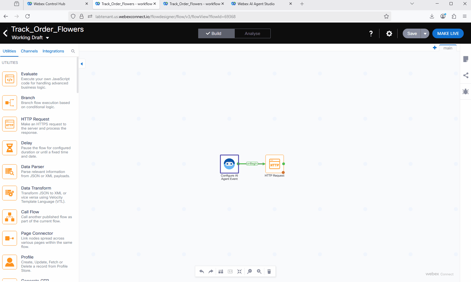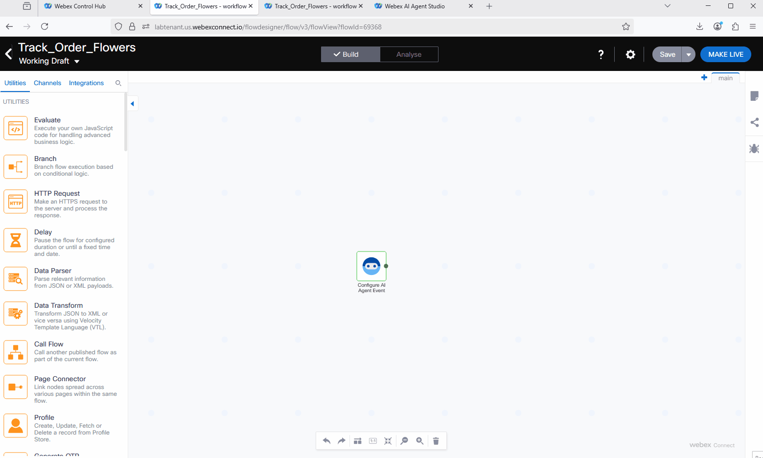 Task 3. Configure Fulfillment flow in Webex Connect.