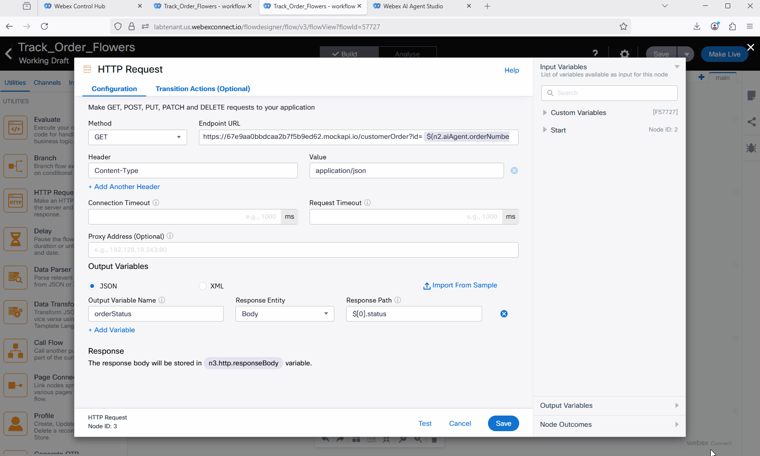 Task 4. Deliver data from Webex Connect to AI studio for the response to the customer.
