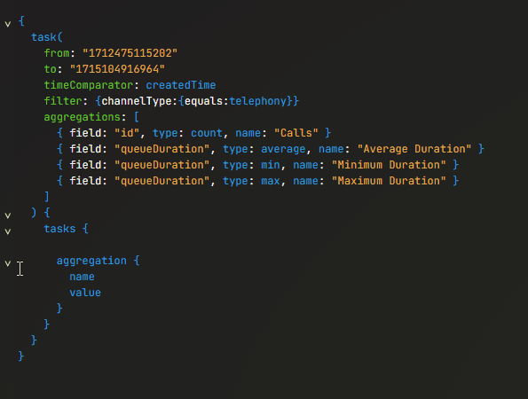 Let's filter the entire query to only return telephony tasks using the report filter and remove channelType from the fields list in task